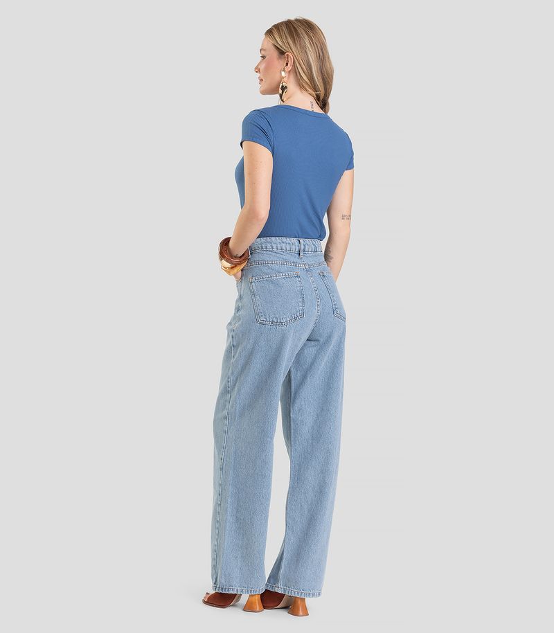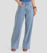A Calça Jeans Feminina Wide Leg Dianna une conforto e estilo em um design moderno. Confeccionada em 100% algodão, com forro 60% poliéster e 40% elastano, oferece caimento estruturado e toque macio. Possui modelagem wide leg e cintura alta que valorizam a silhueta, passantes para cinto e bolsos frontais e traseiros para praticidade. O fechamento em zíper e botão garante ajuste seguro, tornando a peça ideal para looks casuais ou sofisticados.