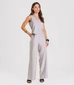 Calça Pantalona em Tecido Alfaiataria Dianna Cinza