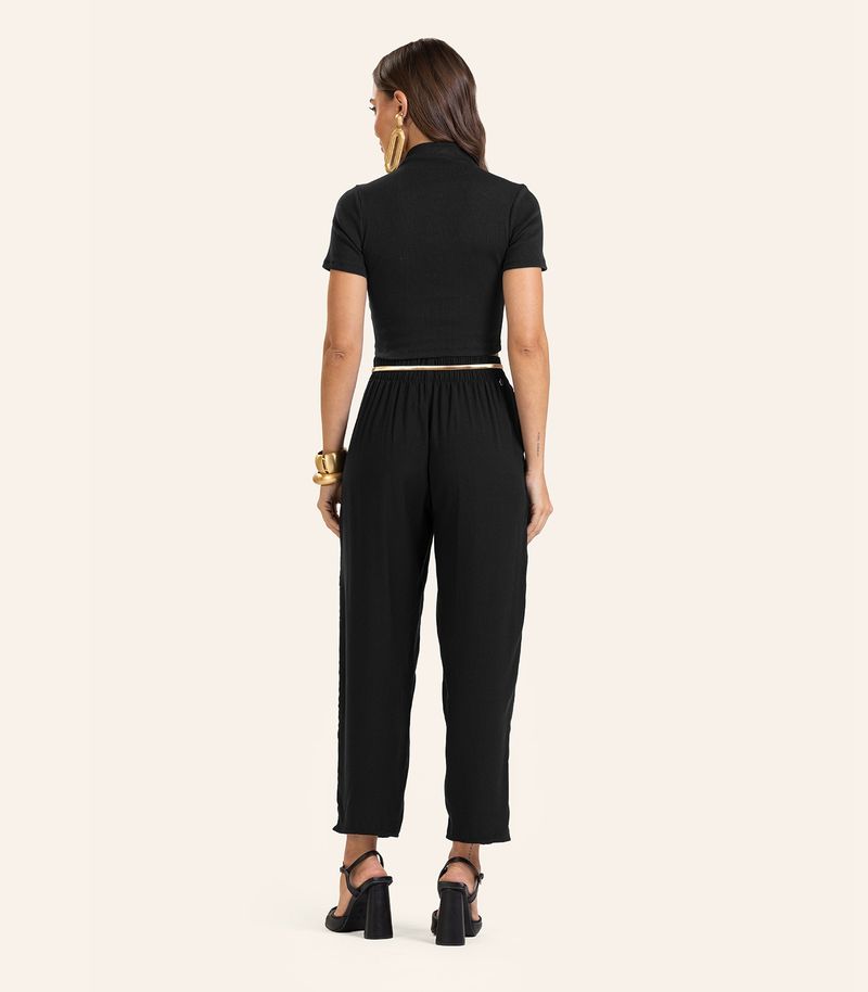 Calça Pantalona Feminina Endless, confeccionada em viscose Double Yarn Solid de caimento elegante. Modelo de base lisa, apresenta cós duplo talhado e entretelado com pesponto de beira, abertura com colchete e braguilha funcional entretelada com zíper de nylon. Possui bolso faca com pesponto interno, cós traseiro com elástico aplicado, além de plaquinha metálica discreta no quadril. Moderna e sofisticada, é ideal para compor looks refinados e versáteis.