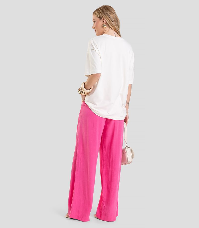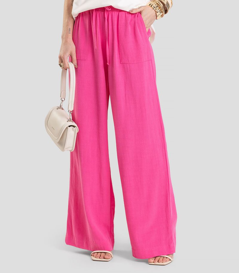 Calça Pantalona Feminina Dianna, desenvolvida em Tecido Linho de toque natural e caimento leve. Possui cós com elástico largo para maior conforto e ajuste perfeito, além de caseados funcionais para passagem de friso com amarração frontal. O destaque fica por conta do bolso estilo carpinteiro, modelo inspirado no utilitário, com formato quadrado e sobreposição aparente que confere um visual moderno e despojado. Finaliza com barra larga em bainha, ideal para looks elegantes