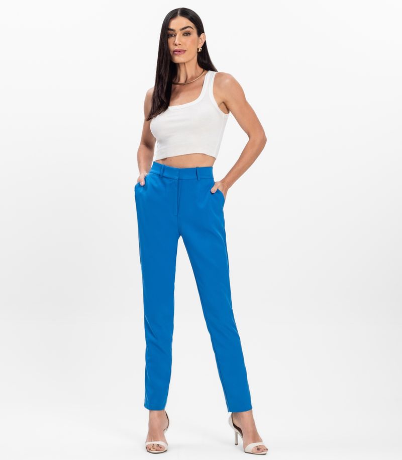 A Calça Reta Feminina Social em Alfaiataria Aishty é confeccionada em 96% poliéster e 4% elastano, com forro dos bolsos em 100% poliéster, garantindo conforto e caimento elegante. Com modelagem reta, possui bolsos faca frontais, passantes para cinto, fechamento por colchete, zíper e botão interno, além de elástico interno no cós para melhor ajuste. Os bolsos traseiros são decorativos, tornando a peça sofisticada, prática e versátil para diversas ocasiões.
