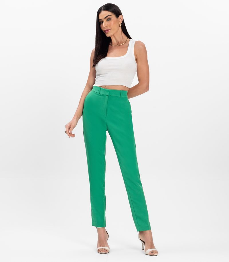 Calça Reta Feminina Social Em Alfaiataria Aishty Verde