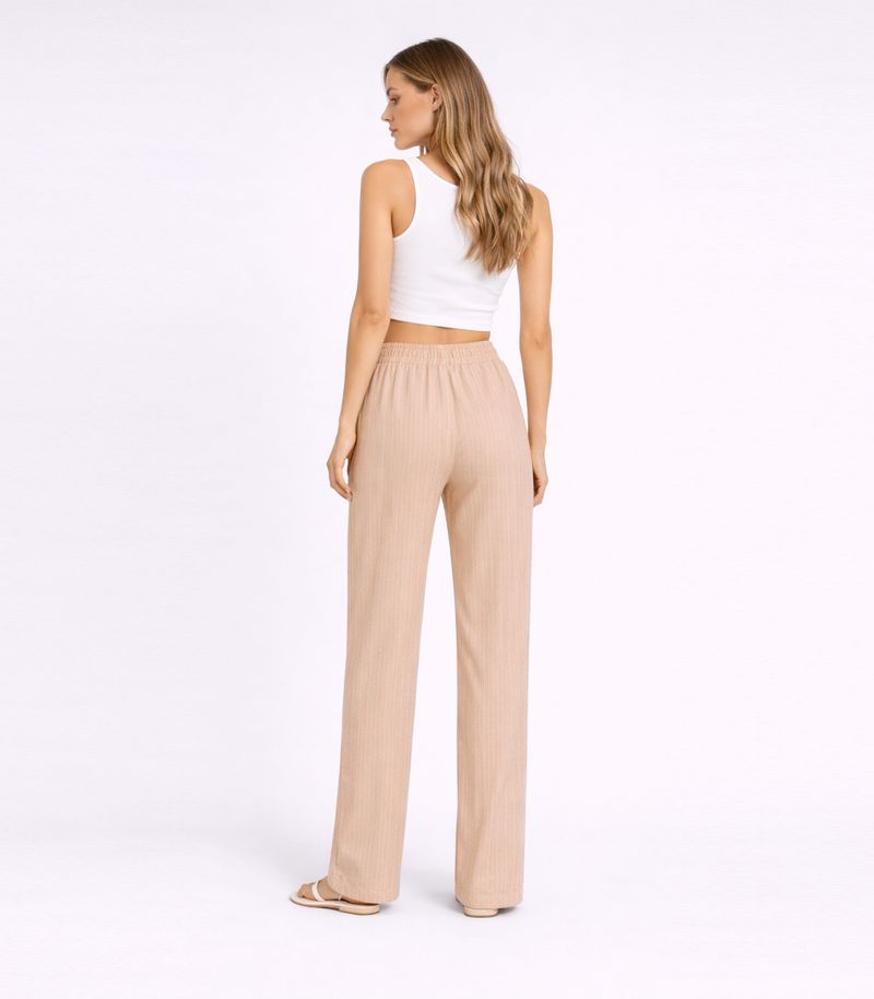 A Calça Risca de Giz Feminina em Air Flow Renaluci é perfeita para compor looks elegantes com conforto. Confeccionada em 100% poliéster, possui tecido leve, com ótimo caimento e visual sofisticado. O modelo conta com cós elástico que garante ajuste confortável ao corpo, além de cordão não funcional para detalhe moderno. Possui bolsos frontais práticos e estampa risca de giz, ideal para produções versáteis no trabalho ou em ocasiões especiais.