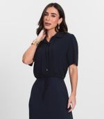 Camisa Feminina Endless confeccionada em viscose sarjada, com gola dupla estruturada e acabamento pespontado. Possui franzidos delicados nos ombros e nas laterais da cintura, vista funcional com cinco botões frontais, e túnel na cintura com amarração ajustável e ponteiras com nó. A peça ainda conta com prega virada para fora na barra frontal, unindo conforto e sofisticação em um visual moderno e elegante.