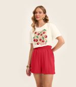 Camiseta Manga Curta Feminina Meia Malha Rovitex Bege