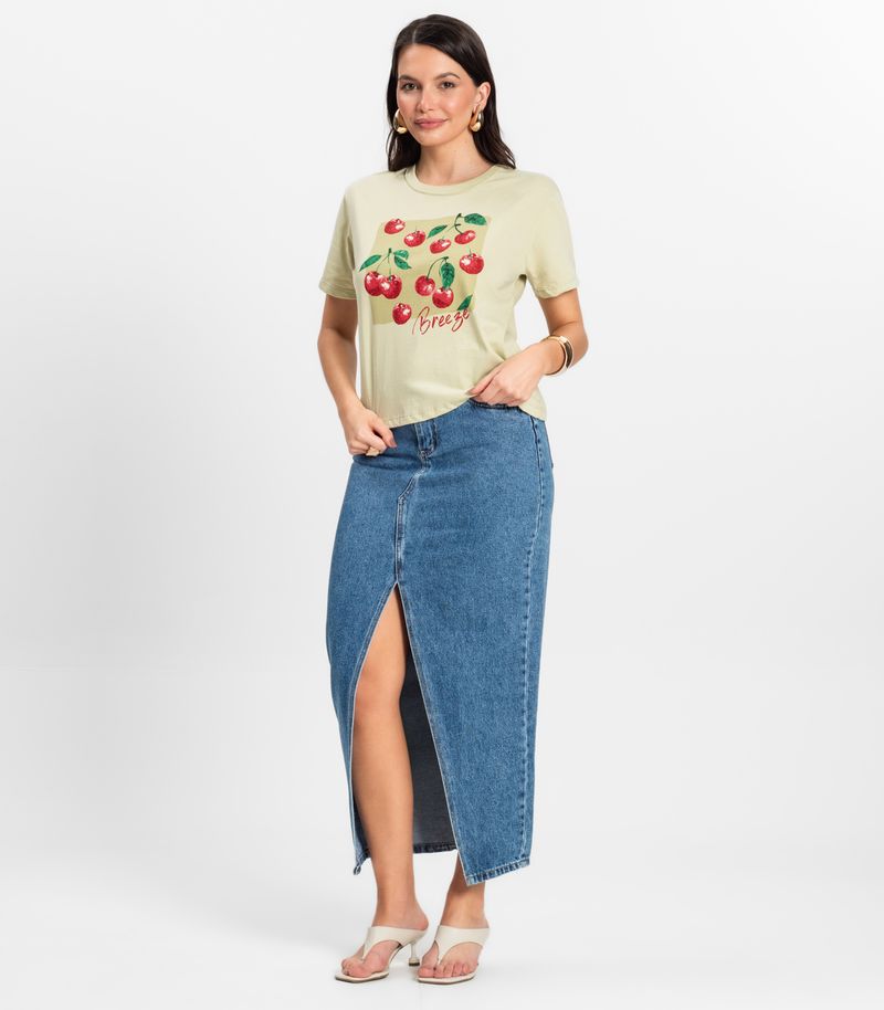 Camiseta Manga Curta Feminina Meia Malha Rovitex Verde