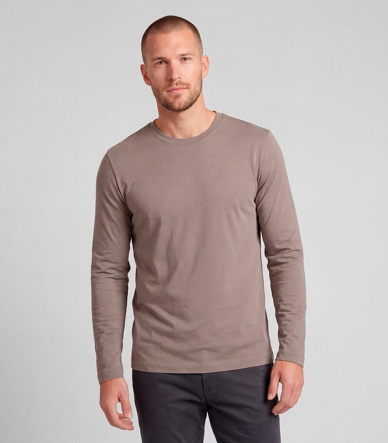 Conforto e estilo definem a Camiseta Manga Longa Diametro. Confeccionada em MALHÃO FLAMÊ de toque leve e texturizado, a peça garante extremo conforto e um caimento moderno, ideal para qualquer estação. O bordado discreto da marca no peito adiciona um toque sofisticado e eleva o visual casual.