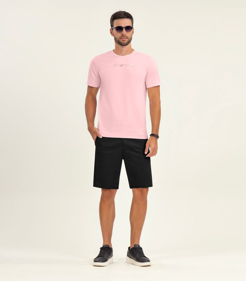 A Camiseta Masculina Manga Curta Diâmetro é confeccionada em meia malha, oferecendo conforto e maciez para o uso diário. Possui bordado frontal que garante um toque de estilo e exclusividade. O acabamento do decote é feito com friso aplicado, assim como as mangas, que têm bainha reforçada com costura dupla para maior durabilidade. A barra também é finalizada com bainha, mantendo o caimento alinhado. Ideal para compor looks casuais com praticidade e estilo.