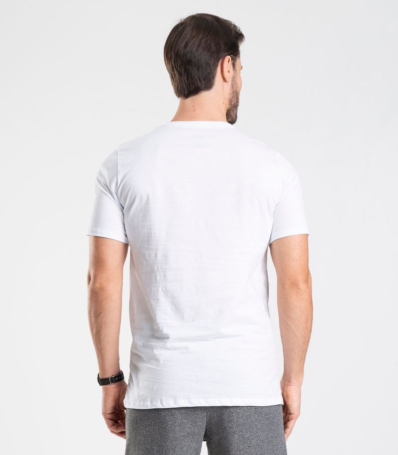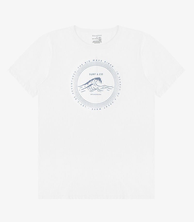 Camiseta Masculina Diâmetro, confeccionada em meia malha de toque suave. Modelo de base lisa com estampa central localizada e detalhe em tampografia. Possui decote redondo em friso e mangas finalizadas em bainha, assim como a barra, garantindo caimento impecável. Perfeita para compor looks frescos, elegantes e cheios de charme, aliando conforto e sofisticação em qualquer ocasião.