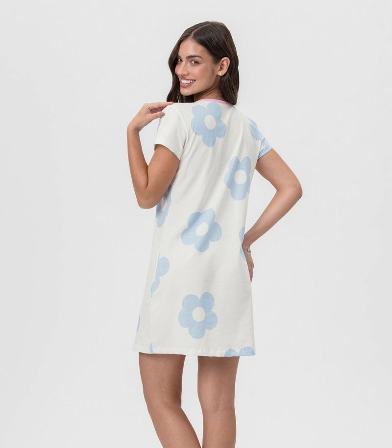 A Camisola Feminina Estampada Mensageira Da Paz é confeccionada em meia malha 100% algodão, proporcionando conforto e toque macio para noites tranquilas. Com manga curta e decote redondo, traz uma charmosa estampa floral que transmite delicadeza. A frase frontal "have a good night" completa o visual com um toque de carinho e positividade. Ideal para quem busca bem-estar e estilo na hora de dormir.