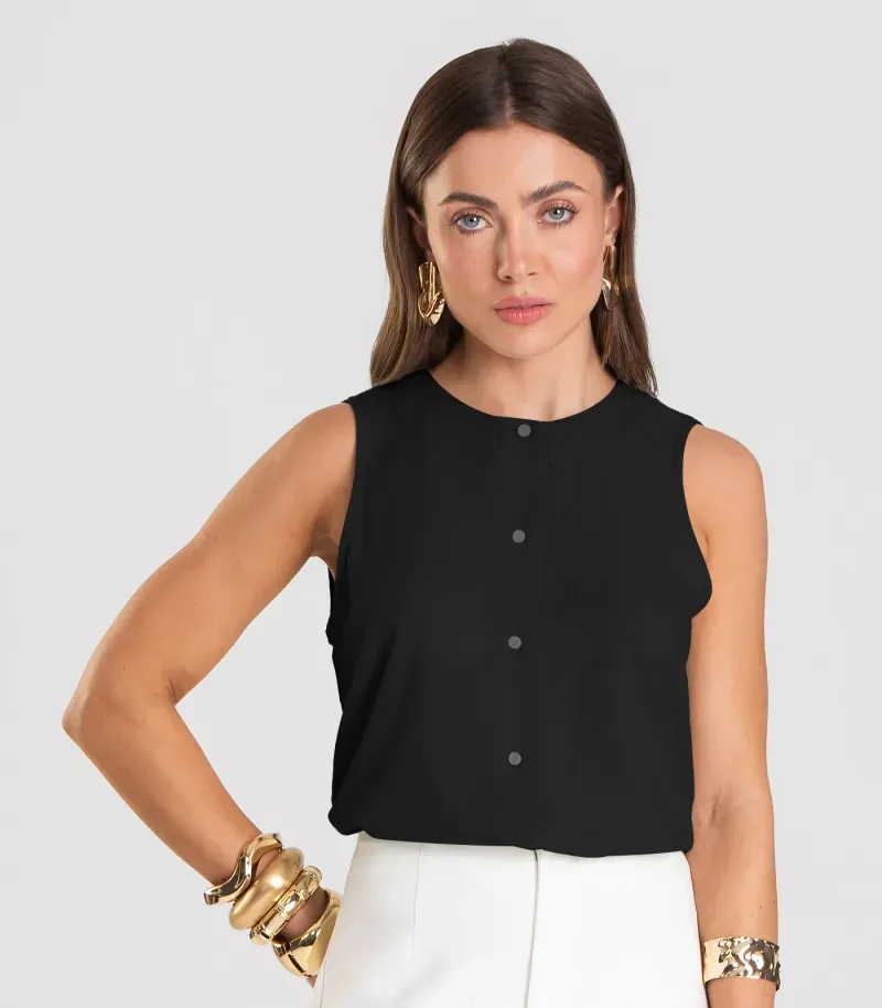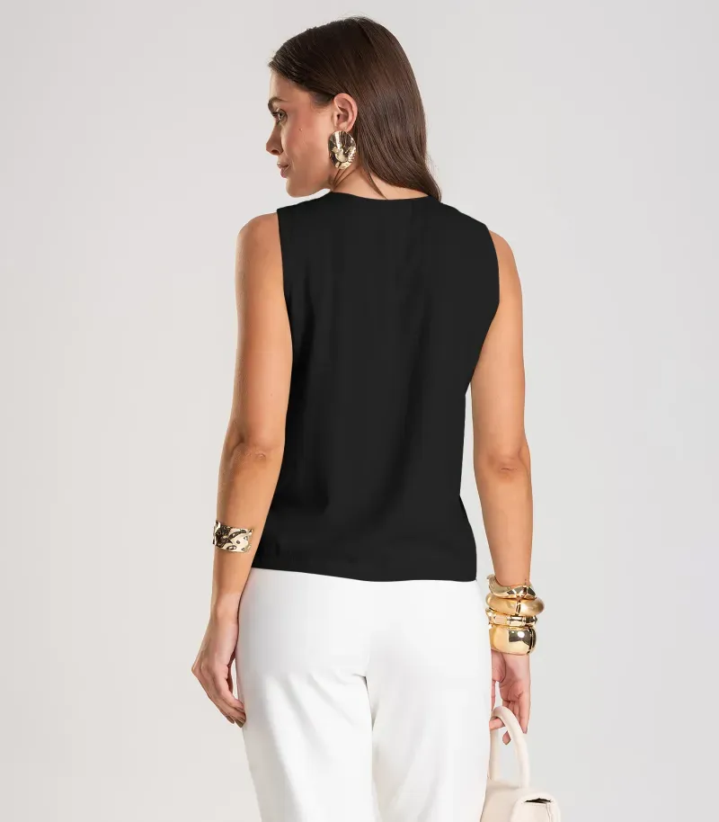 HomeFemininoBlusas e CamisetasRegatasColete Feminino em Tecido Viscose Dianna Preto