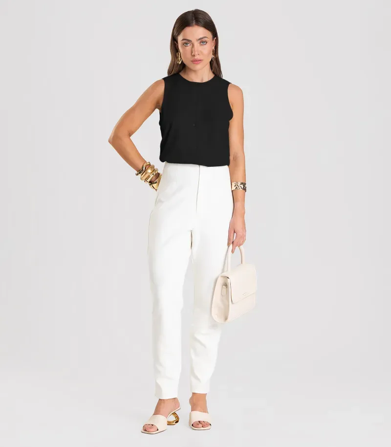 O Colete Feminino Dianna é confeccionado em tecido de viscose, garantindo leveza e ótimo caimento. Possui decote redondo com revel entretelado e pesponto, além de cavas com acabamento em friso pespontado, que valorizam os detalhes da peça. A vista com pesponto e caseados funcionais permite fechamento por botões, trazendo praticidade e elegância. Versátil e moderno, é ideal para compor produções estilosas no dia a dia ou em ocasiões especiais.