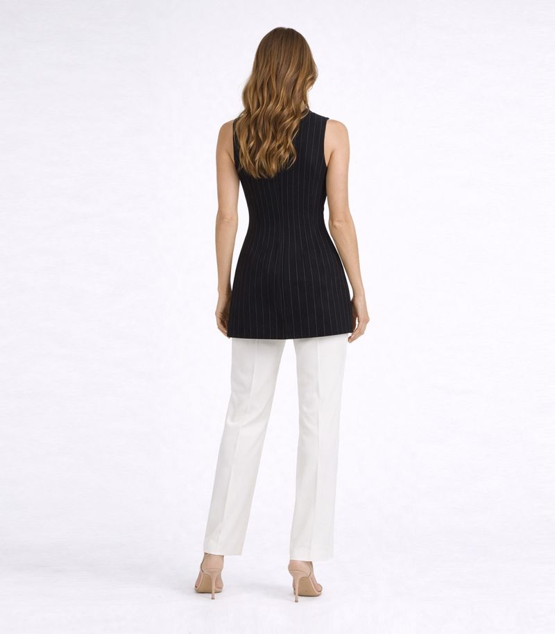 O Colete Risca de Giz Alongado em Air Flow Renaluci é a peça ideal para composições elegantes e modernas. Confeccionado em 97% poliéster e 3% viscose, possui tecido leve, confortável e com ótimo caimento. Sua modelagem alongada valoriza a silhueta, enquanto a estampa risca de giz adiciona sofisticação ao visual. Conta com botão frontal para fechamento, garantindo praticidade e acabamento refinado para diversas ocasiões.
