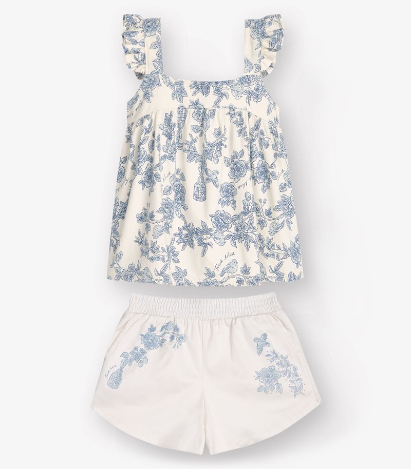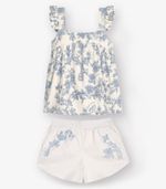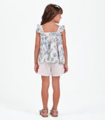O Conjunto Bata com Shorts Trick Nick é confeccionado em cotton leve e sarja twill, oferecendo leveza e conforto para o dia a dia. Possui estampa rotativa na bata e localizada com strass no shorts. O acabamento das mangas é com babado e a barra é feita com costura dupla, garantindo mais resistência. O decote conta com reforço na parte de trás para maior durabilidade. Ideal para compor looks casuais com estilo e praticidade