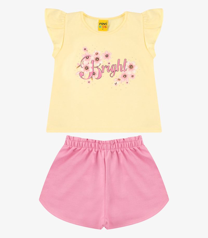 O Conjunto Blusa Com Shorts Rovi Kids é confeccionado em meia malha e moletom sarjado, oferecendo leveza e conforto para o dia a dia. Possui estampa localizada com strass na parte frontal com design moderno. O acabamento das mangas com babado e da barra é feito com costura dupla, garantindo mais resistência. O decote conta com reforço na parte de trás para maior durabilidade. Ideal para compor looks casuais com estilo e praticidade.