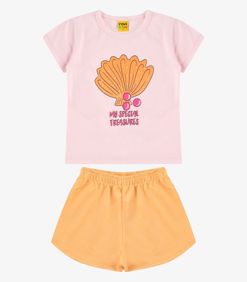 HomeInfantilFemininoConjuntosConjunto Blusa com Shorts Menina Rovi Kids Rosa