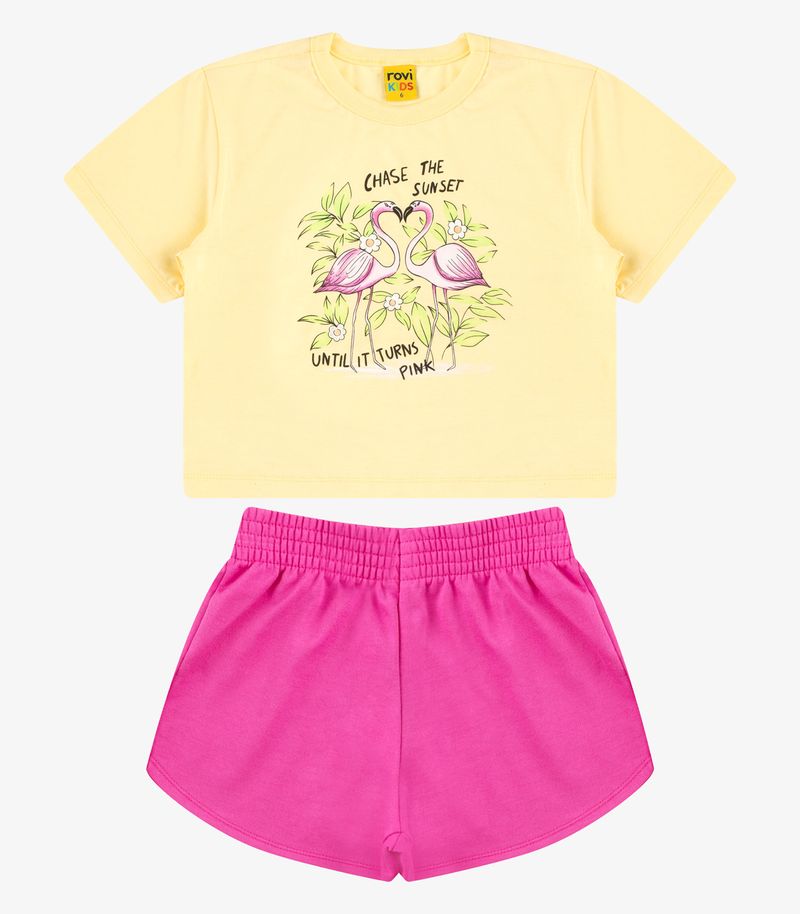 O Conjunto Blusa Com Shorts Rovi Kids é confeccionado em meia malha, oferecendo leveza e conforto para o dia a dia. Possui estampa localizada com strass na parte frontal com design moderno. O acabamento das mangas e da barra é feito com costura dupla, garantindo mais resistência. O decote conta com reforço na parte de trás para maior durabilidade. Ideal para compor looks casuais com estilo e praticidade.