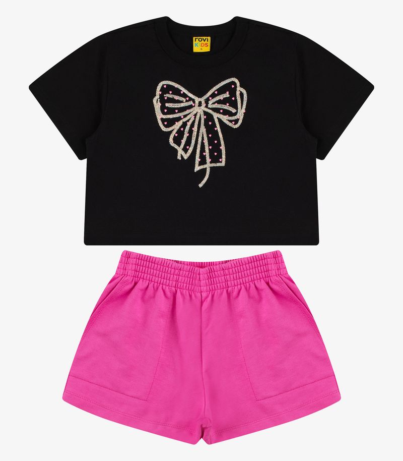 Conjunto Blusa com Shorts Meia Malha Rovi Kids Preto