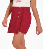centro da blusa, na saia possui botões decorativos e babados na lateral. O acabamento das barra é feita com costura dupla, garantindo mais resistência. O decote conta com reforço na parte de trás para maior durabilidade. Ideal para compor looks casuais com estilo e praticidade