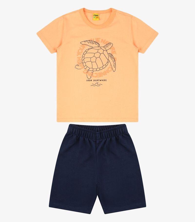 Conjunto Camiseta com Bermuda Menino Rovi Kids Laranja