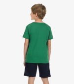 O Conjunto Camiseta Com Bermuda Rovi Kids é confeccionado em meia malha e moletom sarjado, oferecendo leveza e conforto para o dia a dia. Possui estampa