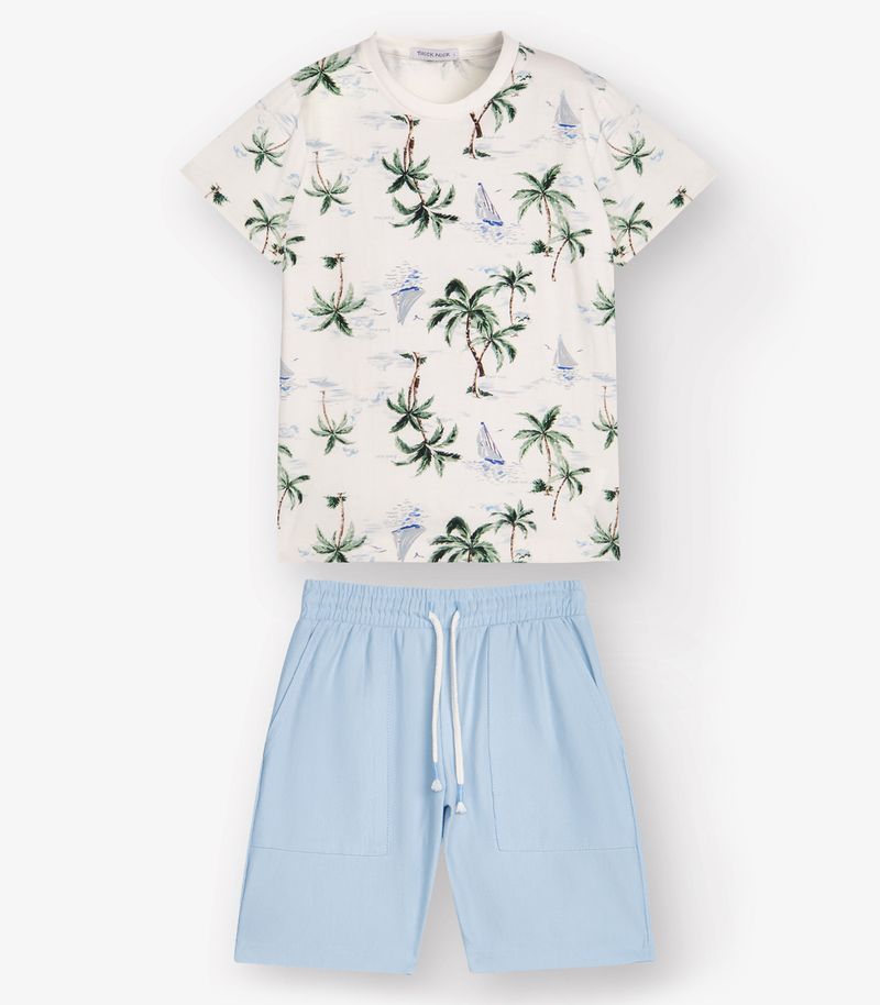 O Conjunto Camiseta com Bermuda Trick Nick é confeccionado em cotton leve e moletinho denim, oferecendo leveza e conforto para o dia a dia. A camiseta possui estampa rotativa. Na bermuda, possui elástico na cintura, cordão decorativo e bolso nas laterias. O acabamento das barra é feita com costura dupla, garantindo mais resistência. O decote conta com reforço na parte de trás para maior durabilidade. Ideal para compor looks casuais com estilo e praticidade