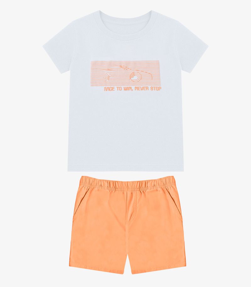 O Conjunto Infantil Camiseta com Bermuda Select oferece conforto e estilo para o dia a dia das crianças. A camiseta, confeccionada em 100% algodão, possui toque suave, manga curta e decote redondo, garantindo leveza e liberdade de movimento. Acompanha bermuda com elástico no cós, proporcionando ajuste perfeito, além de bolsos faca frontais que adicionam praticidade e charme ao visual. Ideal para momentos de lazer, brincadeiras e passeios com muito conforto.