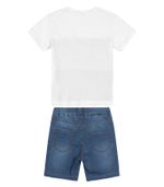 O Conjunto Infantil Camiseta Com Bermuda Trick Nick é a escolha perfeita para um visual moderno e confortável. A camiseta, confeccionada em meia malha, apresenta um bolso e recortes que adicionam estilo e personalidade. Com três cores vibrantes disponíveis, permite variar o look. A bermuda, feita em light denim com elastano, oferece conforto com seu cós embutido e elástico, além de bolsos laterais e traseiros funcionais. Este conjunto é a combinação ideal de moda e praticidade.