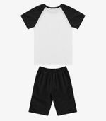 Conjunto Infantil Trick Nick composto por camiseta em meia malha e bermuda em moletom sarjado. A camiseta possui gola em ribana com reforço interno e patch termocolante com estampa frontal estilosa. A bermuda conta com cós confortável com elástico embutido e acabamento reforçado, além de bolsos faca com pesponto, oferecendo praticidade e estilo. Ideal para o dia a dia com muito conforto e um visual moderno.