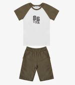 Conjunto Infantil Trick Nick composto por camiseta em meia malha e bermuda em moletom sarjado. A camiseta possui gola em ribana com reforço interno e patch termocolante com estampa frontal estilosa. A bermuda conta com cós confortável com elástico embutido e acabamento reforçado, além de bolsos faca com pesponto, oferecendo praticidade e estilo. Ideal para o dia a dia com muito conforto e um visual moderno.