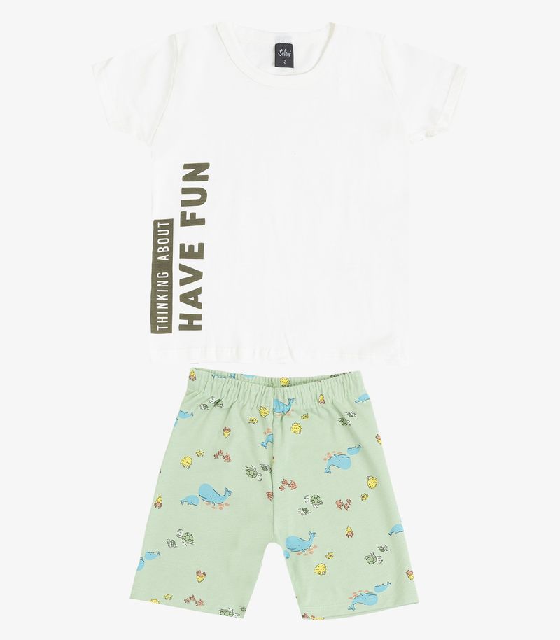 Conjunto Infantil Masculino Select, desenvolvido em Meia Malha Maquinetada e Moletinho, que garantem conforto e liberdade de movimento. A camiseta possui decote redondo, manga curta e estampa localizada que traz um toque moderno ao visual. A bermuda conta com cós com elástico para melhor ajuste e acabamento em bainha, proporcionando praticidade no dia a dia.