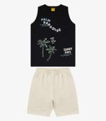 O Conjunto Regata com Bermuda Rovi Kids é confeccionado em meia malha e moletom sarjado, oferecendo leveza e conforto para o dia a dia. Possui estampa localizada no