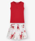 O Conjunto Regata com Saia Trick Nick é confeccionado em ribana 2x1 e popeline, oferecendo leveza e conforto para o dia a dia. Regata possui base lise, com bordado no centro da peça e ponto concha no acabamento da barra da manga. O shorts possui estampa rotativa, elástico na cintura e bolso nas laterais. O decote conta com reforço na parte de trás para maior durabilidade. Ideal para compor looks casuais com estilo e praticidade