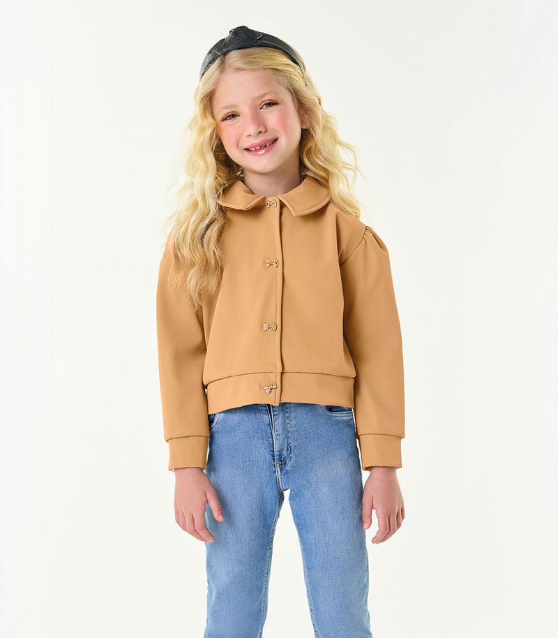 Descubra a elegância da Jaqueta Infantil Feminina em Suede Trick Nick, confeccionada em sintético rajado suede. Com gola dupla que adiciona um toque refinado, esta jaqueta é uma peça única para as pequenas fashionistas. O leve franzido na manga acrescenta um charme sutil, enquanto os botões proporcionam um fechamento prático e estiloso. O suede rajado confere uma textura suave e um visual moderno à jaqueta.