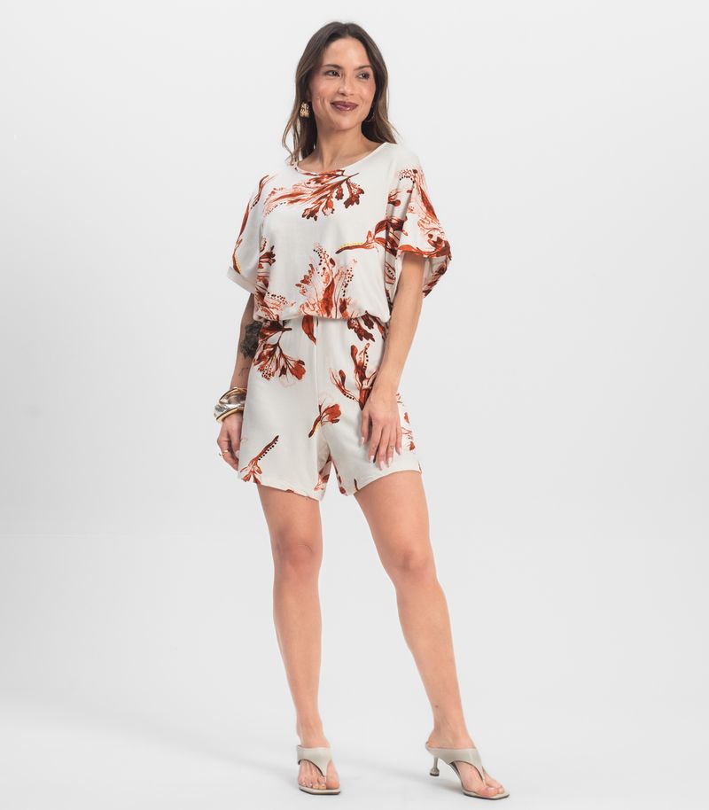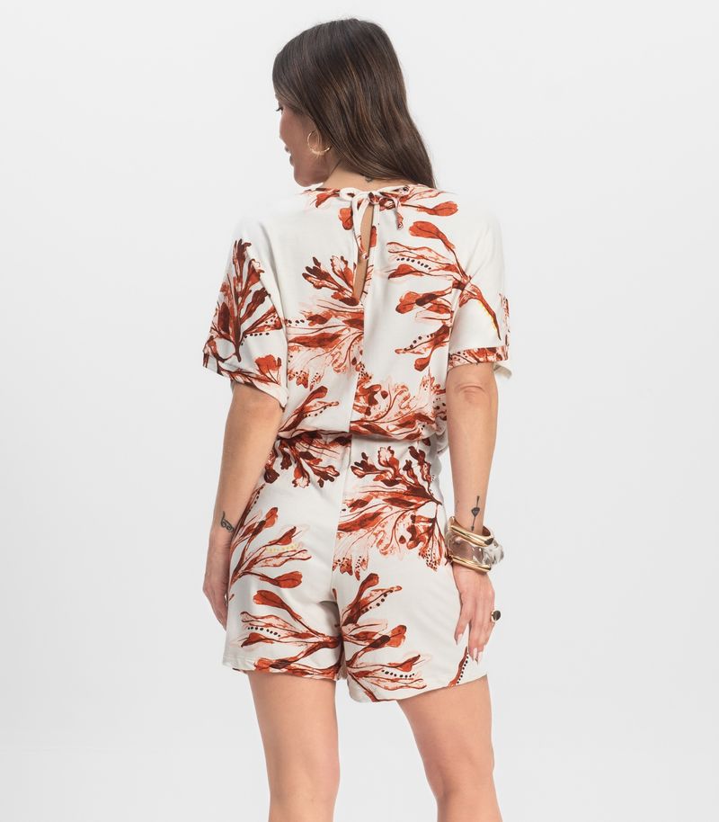 Macaquinho Feminino desenvolvido em Molecotton Viscose Light, com estampa rotativa. Possui mangas amplas, abertura nas costas com amarração em laço, e elástico na cintura, proporcionando mais conforto ao vestir.A peça única que não pode faltar no guarda-roupa, confortável e versátil, ideal para diversas ocasiões! Combine com: tênis ou sandálias e muitos acessórios.