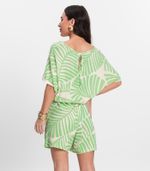Macaquinho Feminino desenvolvido em Molecotton Viscose Light, com estampa rotativa. Possui mangas amplas, abertura nas costas com amarração em laço, e elástico na cintura, proporcionando mais conforto ao vestir.A peça única que não pode faltar no guarda-roupa, confortável e versátil, ideal para diversas ocasiões! Combine com: tênis ou sandálias e muitos acessórios.