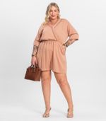 O macaquinho plus size Secret Glam é confeccionado em viscose Double Yarn Solid, tecido leve e confortável, ideal para dias mais quentes. Seu design moderno conta com entremeios delicados na gola e nas mangas, trazendo charme e sofisticação à peça. Com caimento fluido, valoriza as curvas com elegância, sendo perfeito para diversas ocasiões. Um look prático, estiloso e cheio de personalidade para a mulher plus size.