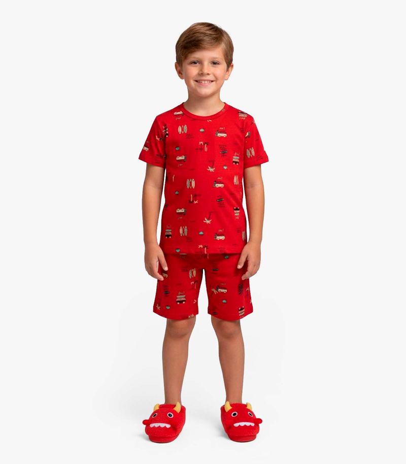 Pijama Infantil Camiseta e Bermuda Select, desenvolvido em Meia Malha Penteada de toque macio e confortável, ideal para noites tranquilas. A camiseta possui decote redondo em friso e manga curta, oferecendo praticidade e leveza. A bermuda conta com cós com elástico que garante ajuste perfeito e liberdade nos movimentos. As duas peças apresentam estampa rotativa divertida, deixando o visual ainda mais encantador e cheio de personalidade.