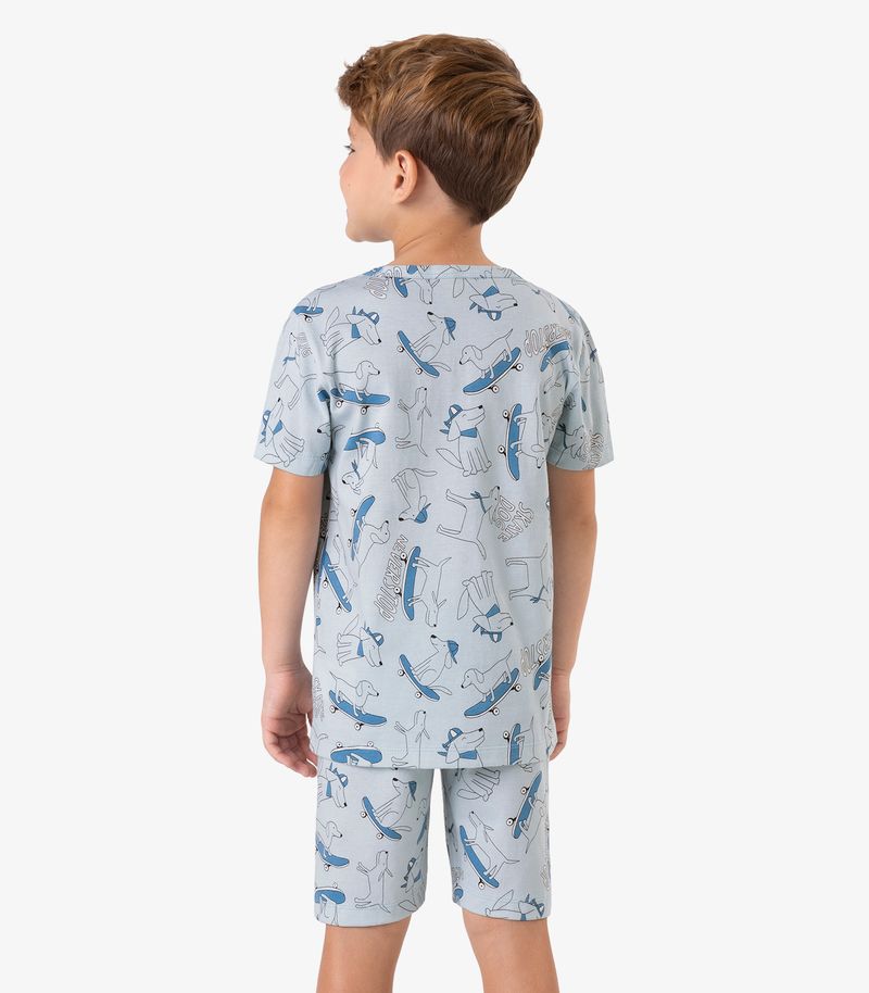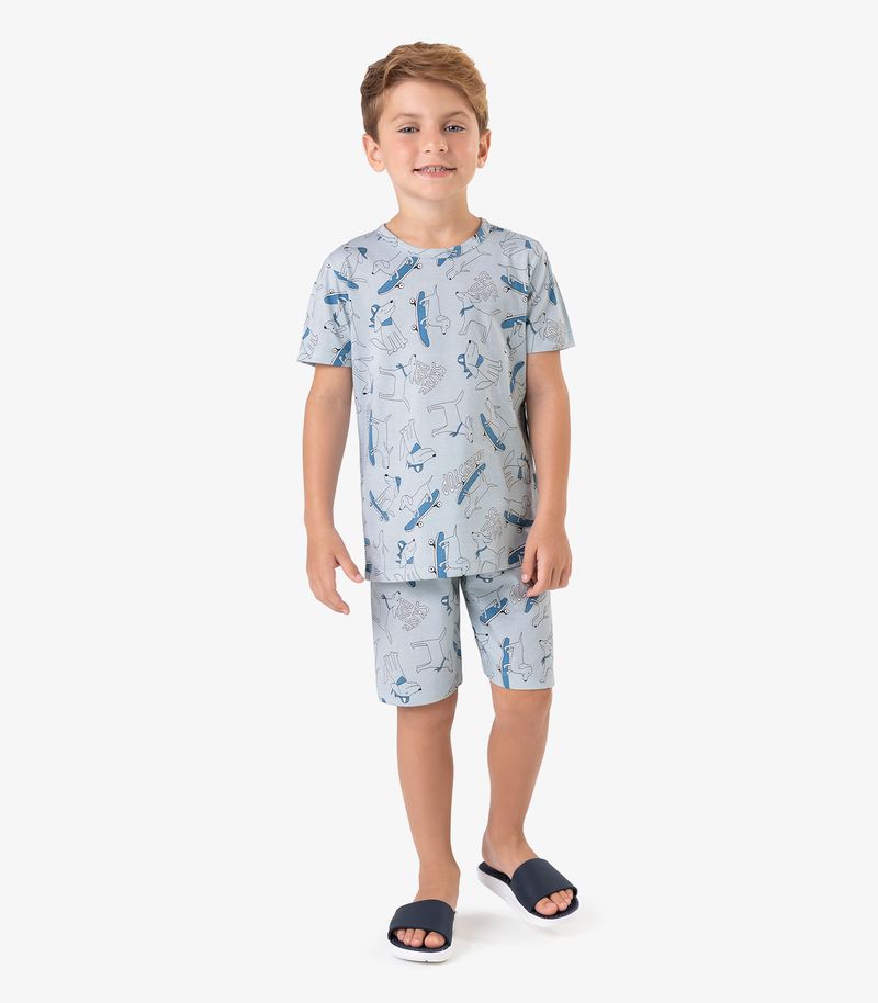 Pijama confeccionado em meia malha, leve e confortável, ideal para as noites de sono. A camiseta possui gola com acabamento em friso, estampa divertida na parte da frente e bainha com costura dupla nas mangas e na barra. O short tem estampa rotativa, cós com elástico embutido para melhor ajuste e bainha com acabamento reforçado. Um conjunto prático, macio e estiloso para garantir conforto e liberdade de movimento às crianças.