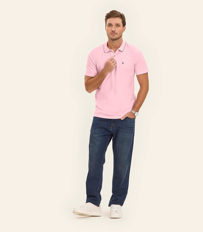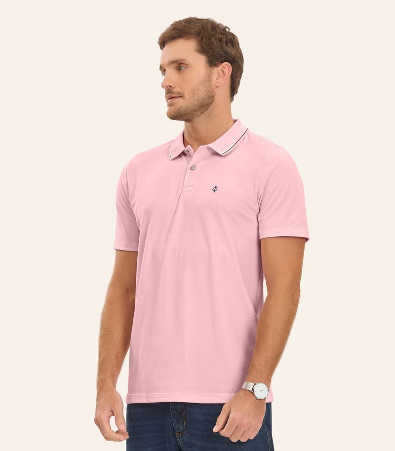 Polo em Piquet Duplo Pa Masculina Diametro Rosa