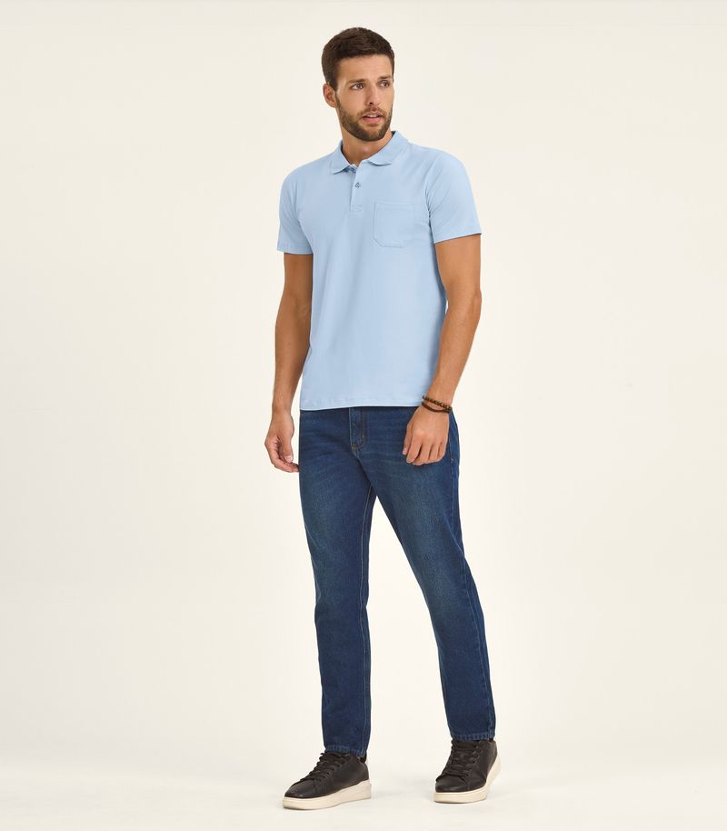 Polo Masculina Com Bolso Cotton Leve Diametro Azul