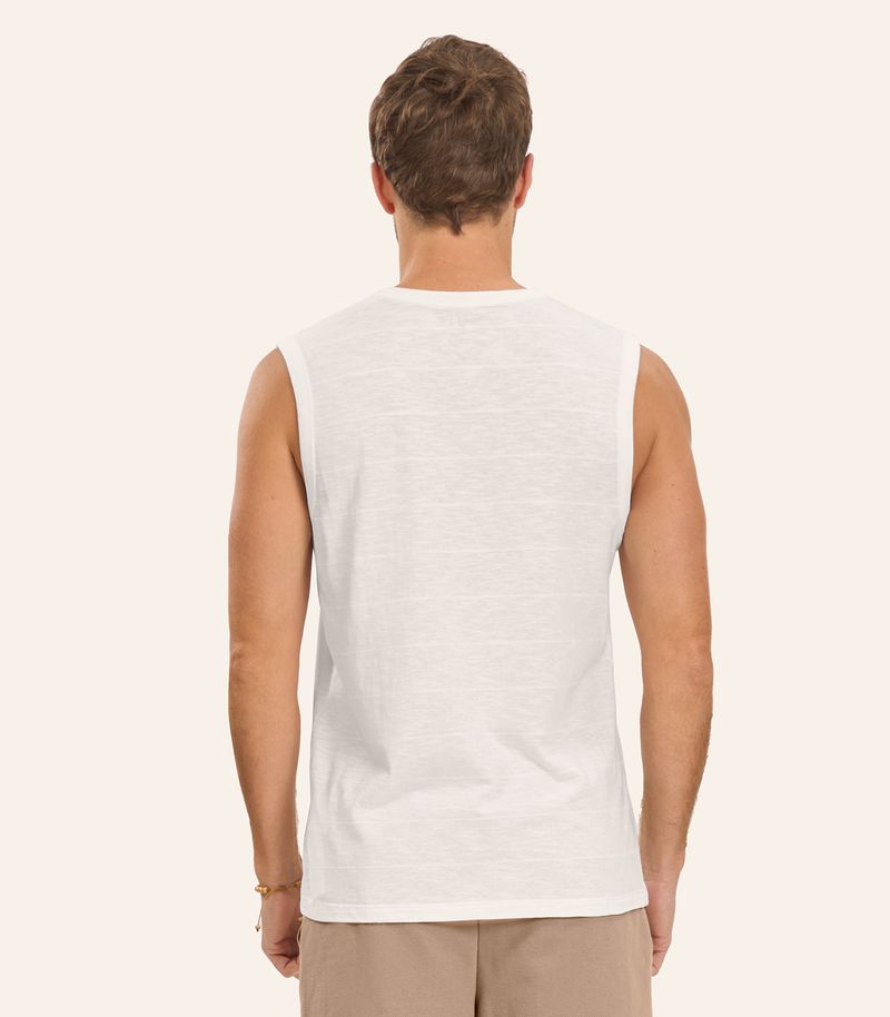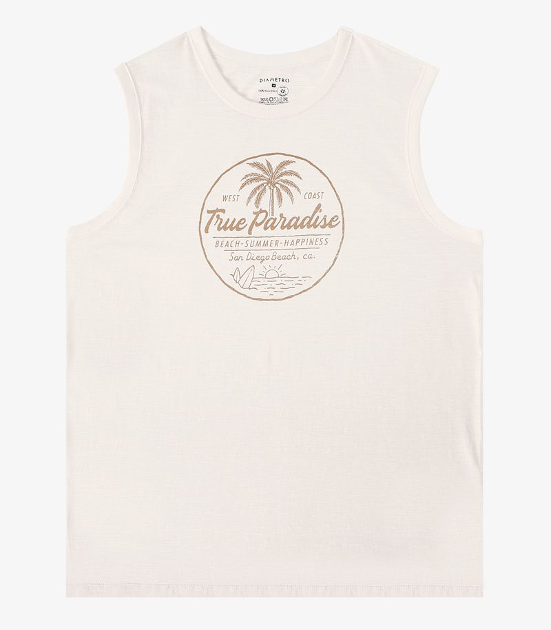 Regata em Meia Malha Masculino Diametro, confeccionado em meia malha flamê maquinetada de toque leve e confortável. Modelo de base lisa com estampa central na parte frontal, decote redondo e cavas com friso para maior durabilidade. Possui tampografia no decote e barra finalizada com bainha, garantindo acabamento refinado. Peça ideal para compor looks frescos e descontraídos, perfeitos para dias ensolarados e ocasiões casuais.