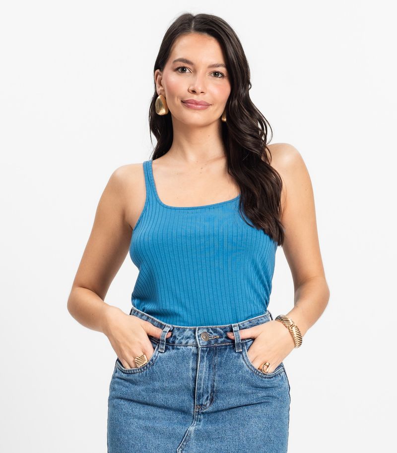HomeFemininoBlusas e CamisetasRegatasRegata em Ribana Canelada Rovitex Azul