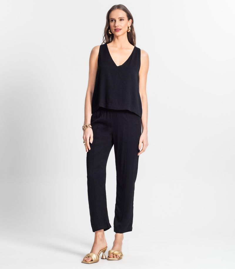 Regata Feminina Decote V Em Viscose Endless Preto