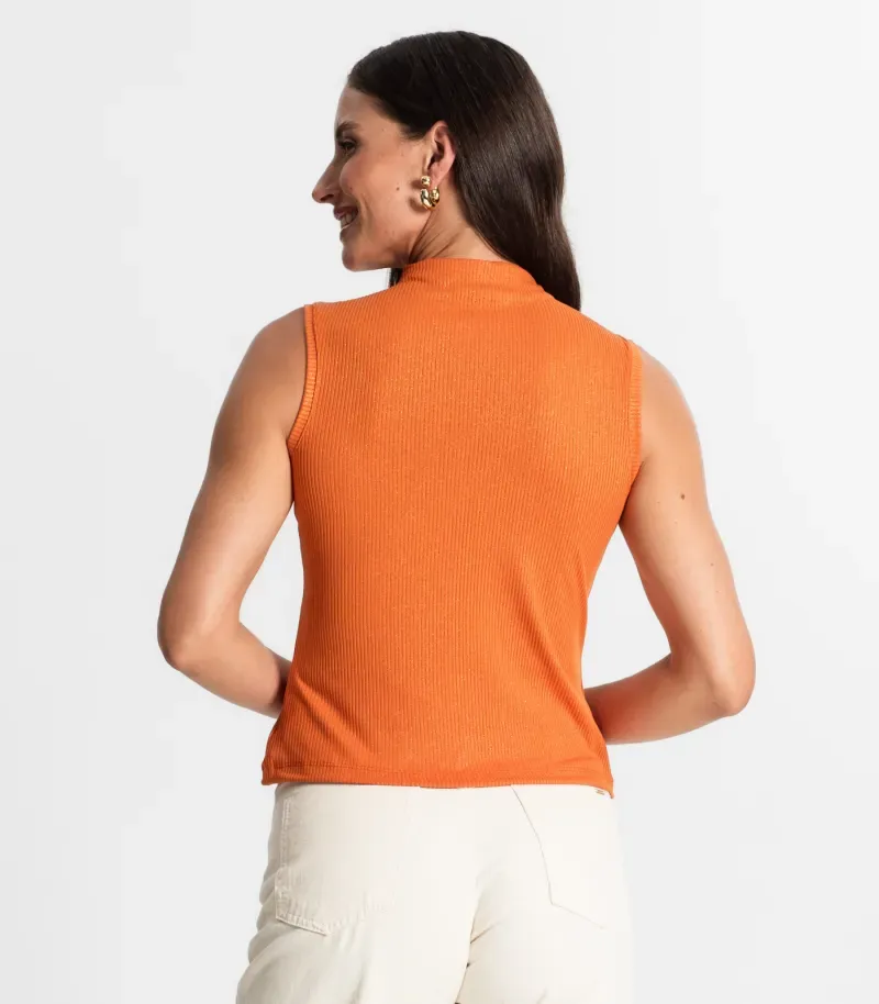Regata Feminina Em Ribana Canelada Lurex Rovitex Laranja