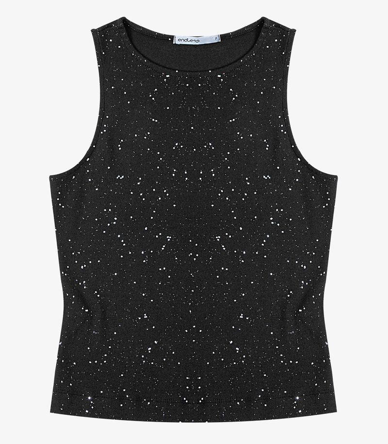 Regata Feminina Endless confeccionada em ribana com glitter, que garante brilho discreto e toque moderno. O modelo possui decote e cavas com acabamento em friso rebatido, recorte nas costas com detalhe decorativo e barra com acabamento duplo pespontado, que traz mais firmeza e durabilidade à peça. Ideal para compor looks confortáveis com estilo, valorizando a silhueta com seu caimento ajustado ao corpo.