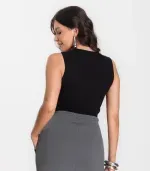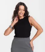 Regata Feminina Infinita Cor confeccionada em ribana canelada, garantindo conforto e toque macio. Possui decote curto com acabamento em friso e pespontos largos, além de cavas com friso para melhor acabamento. O comprimento vai até o início do quadril, com barra finalizada em bainha. As costas são lisas, com recorte central que valoriza o caimento da peça. Ideal para compor looks leves e versáteis no dia a dia.