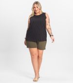 Regata confeccionada em tecido visco com estampa de listras verticais, leve e confortável, ideal para dias quentes. Possui decote arredondado e cavas com acabamento em friso, garantindo mais delicadeza e resistência. A barra conta com bainha fina e acabamento limpo, que proporciona um caimento fluido e um visual moderno. Uma peça versátil que combina com diferentes estilos e ocasiões.