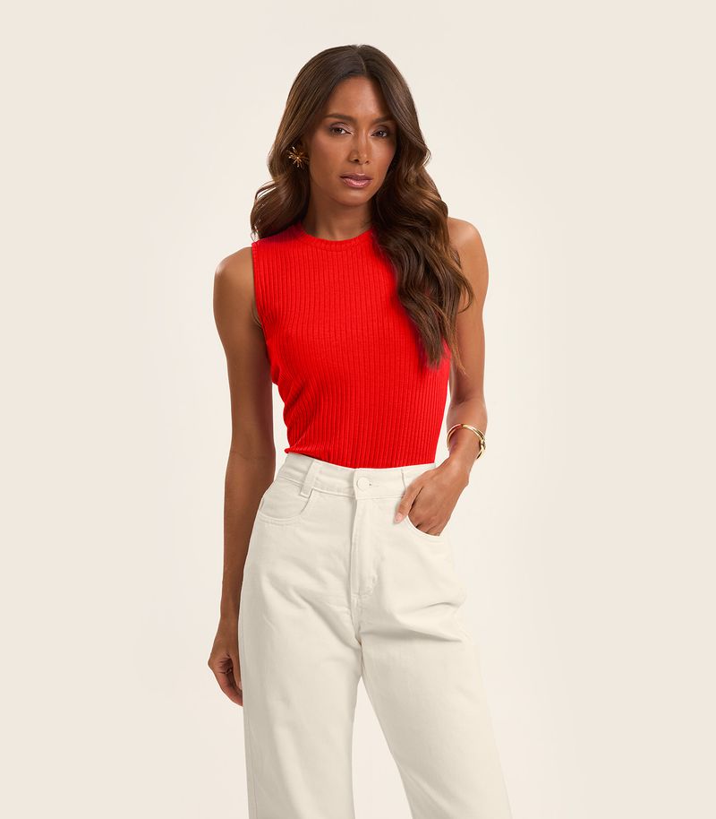 A regata confeccionada em ribana canelada é uma peça confortável e elegante. Com seu tecido macio e maleável, ela se ajusta perfeitamente ao corpo, valorizando a silhueta. A plaquinha de metal, um detalhe sofisticado, adiciona um toque de glamour à peça. Versátil, a regata pode ser combinada com diversas peças, desde calças jeans até saias mais sofisticadas, e é ideal para diversas ocasiões, desde um passeio no parque até um jantar elegante.