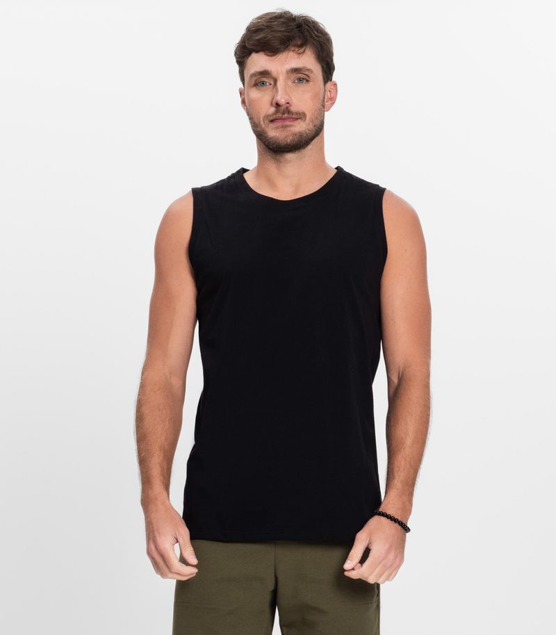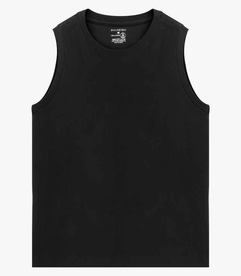 Regata Masculina Básica Meia Malha Diametro Preto